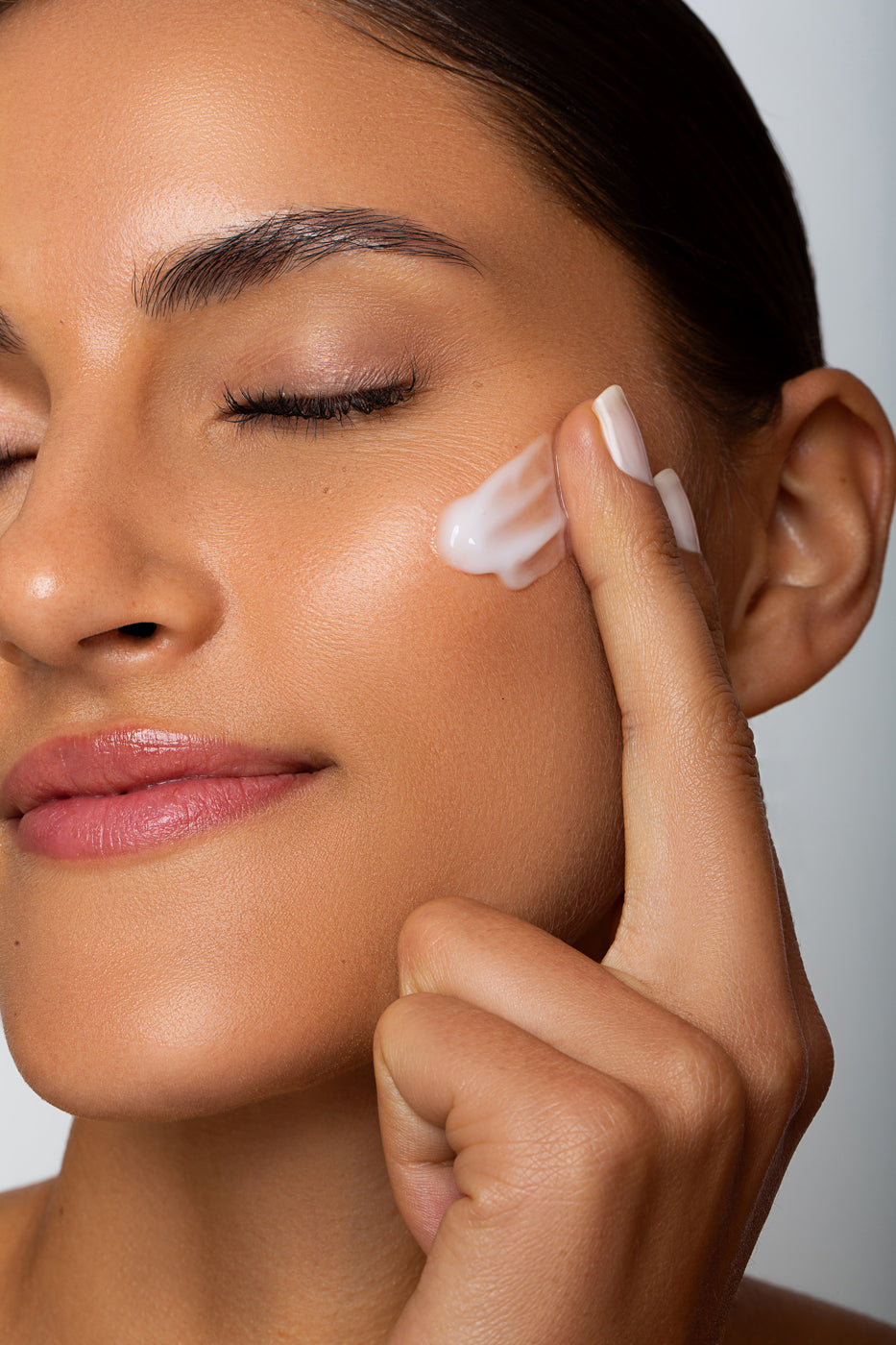 Anschließend die Emulsion gleichmäßig verteilen und sanft einmassieren. Versiegelt die Feuchtigkeit und stärkt die Hautbarriere.